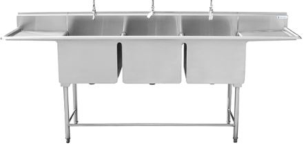 Fregadero de 3 Tanques con Dos Escurrideros 18″x18″x12″